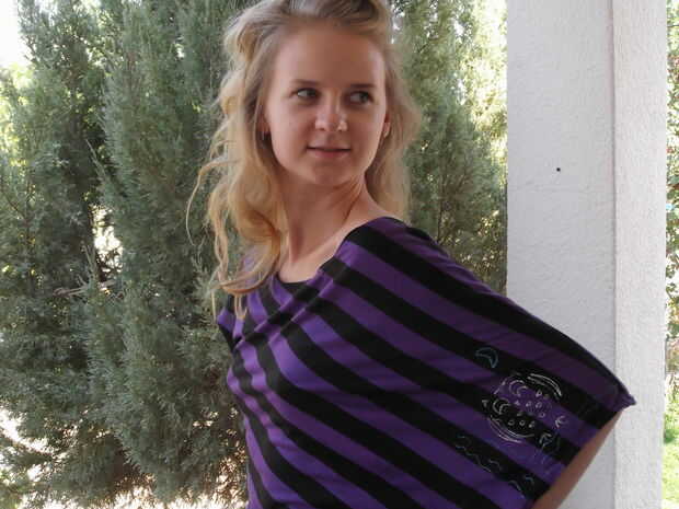 hacer tu propia camiseta con monograma utilizando el tipo!Paso 1: Lo que necesitaráUna carta de su favorito tipo de letra. Este tutorial utiliza Kewl Script.Camisa de algodónTijerasCintaCuchillo X-ACTOPapel de ceraPintura de tela metálica y pintura