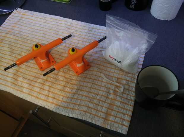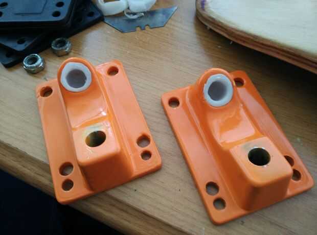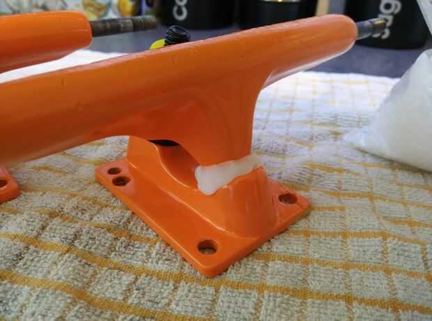 1. toma de las placas base e inserte las tazas de pivote. Me gusta usar un poco de lubricante de cera base aquí para impedir que los camiones de chirridos.