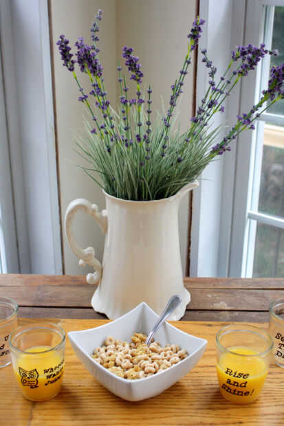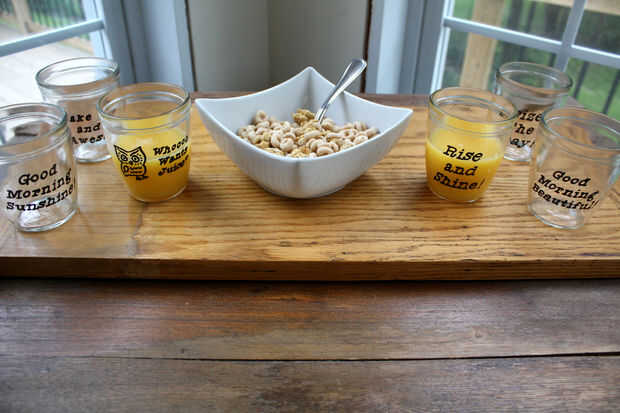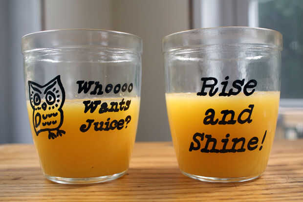 Cuando la pintura haya secado es tiempo para disfrutar de tus nuevos vasos de jugo con un delicioso desayuno y zumo de!