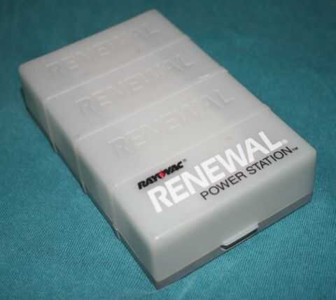 Introducido en 1993, la Corporación de Rayovac comercializa y vende un sistema de batería llamado "Renovación". Era único porque utiliza una batería alcalina que es muy similar a una batería regular "desechable" y prometió a rellenar los huecos que deja la naturaleza de las baterías recargables "normal". Ellos habían un varios años vida útil en comparación con en el mejor unos meses, cargada que ofrecen la misma potencia 1,5 voltios normalmente alcalina en comparación con los 1,2 voltios de las baterías de ni-CD o Ni-MH y por supuesto eran muy respetuosa porque eran básicamente alcalinas que podrían ser recargadas, sin metales pesados ni materiales tóxicos que requieren disposición especial.