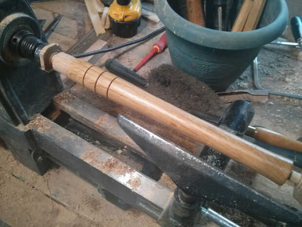 A continuación es una cuestión de elección, pero es muy recomendable. Utilizando un cincel de punta de lanza punto, talladas ranuras en el extremo ancho de la empuñadura para actuar como 'tracción', lo que permite un agarre más firme. Puede ser estética, pero puede ir un largo camino a la prevención de la herramienta resbale de tu mano cuando se usa.