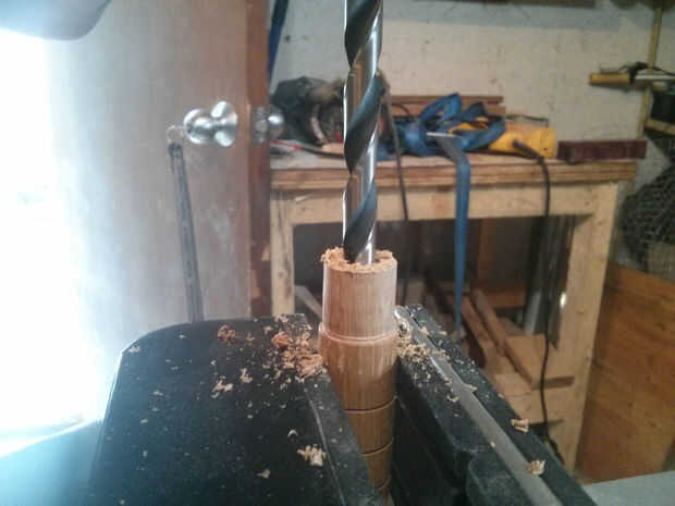 La parte más difícil de este paso es asegurar que la ranura recta, que es donde un buen taladro entra en juego. El tamaño de la ranura debe ser unos pocos miles de pulgada más pequeño que la espiga por lo que será necesaria la presión para establecer en su lugar. Perforarlo para que 1/3 de la longitud de su vástago se encuentra en el mango.