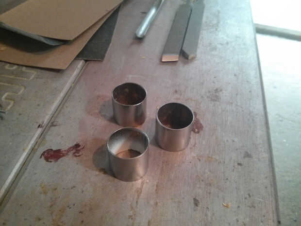 La férula está hecha de tubo de acero de cobre amarillo de cobre con un diámetro interno de 3/4 y corte a 3/4" de largo, luego pulido. Puede utilizar una sierra para metales o una amoladora angular y buff en una rueda de alambre para eliminar las rebabas. Te recomiendo alisar los extremos en una lijadora de banda para asegurarse de que son simétricos.
