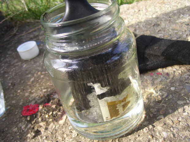rápido y con precisión. Pintar cada parte del pecho y si terminado de girar para arriba y pintar la parte inferior también! Esperar que se seque! Usted puede pintar dos veces, y será más agradable. Vierta diluyente al frasco y limpie los cepillos también.
