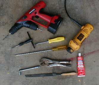 Mordazas de tornillo de banco, una llave de 8 mm y algo para marcar los agujeros utilicé un 5/16" golpe de transferencia,) alguna forma de marcar el centro y marque con un punzón.
