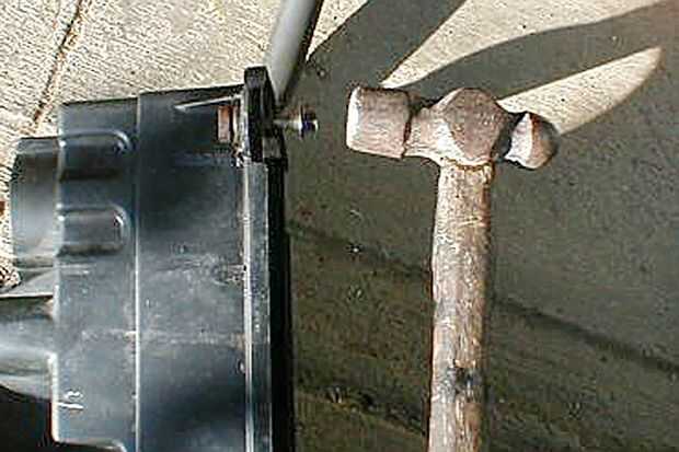 Utilizando uno de los viejos pernos tornillos en las tuercas viejas y les golpee de la carcasa de la caja de plástico con un pequeño martillo.
