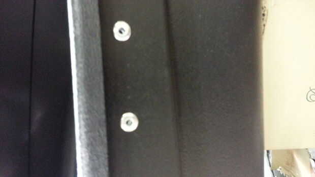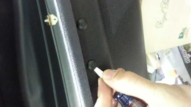 Primero me quitan los tapones de plástico de los remaches en la parte exterior de la compañía. Luego taladrar los remaches viejos y quitar el soporte.