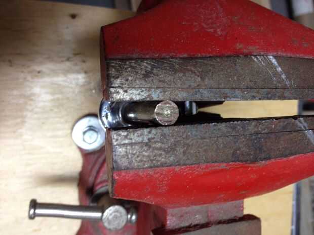 corté la sección corta de los roscados estropeados del extremo del émbolo con una sierra para metales.