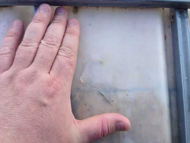 El contenedor IBC utilizado para contener agua de lluvia en nuestra asignación había desarrollado una grieta grande y desagradable en la parte inferior. Reparación que plantea un desafío; cualquier arreglo tendría que ser impermeable y muy fuerte dada la presión que se ejercerá en el sitio de la reparación una vez que el depósito está lleno. Además, la reparación podría intentarse sólo en un lado del contenedor. Ahorro y reutilización del agua de lluvia en nuestra asignación son importante, pero simplemente sustituyendo el IBC no era una opción atractiva, siendo costoso, desperdiciador de tiempo y malo para el medio ambiente.