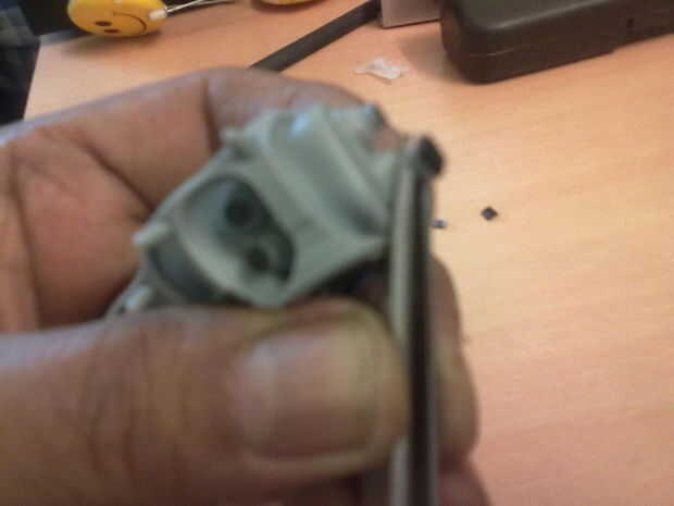 8) luego estas piezas se fijan sobre dañado contacto de goma con pegamento instantáneo. (Imagen 9)