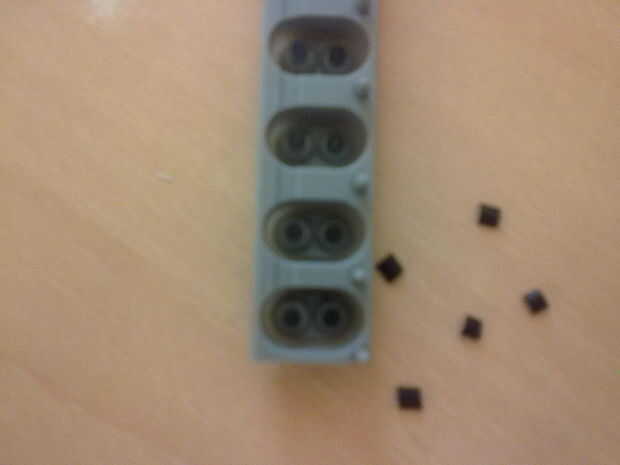 7) recibí el viejo sintetizador, quité su tira goma de contacto. (Imagen 7) hechas trocitos redondos (diámetro 3 mm). (Imagen 8)