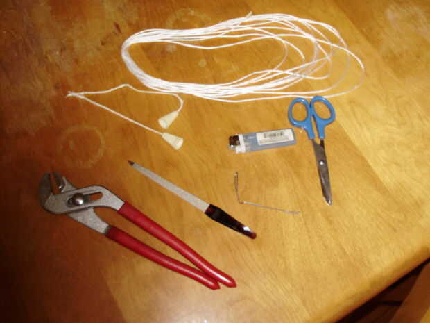 se realizaron búsquedas en varios lugares en busca de cable adecuado. De Lowe's y Home Depot no llevan ninguna y sugirieron la tienda especialidad ciegos que evitamos porque probablemente cobrarían un paquete para él. Finalmente fuimos a Joann Fabrics y revisar su sección de tela de tapicería/decoración y encontrar alguna cuerda de poliéster en el tamaño correcto. Era blanco y no a encuentro exactamente el color de nuestras persianas pero no nos importa.