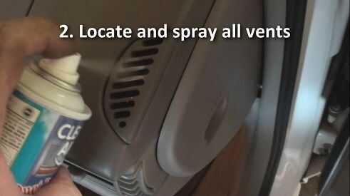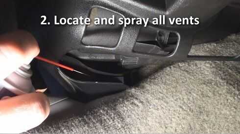 • Mirar debajo de asientos para los respiraderos del tubo suministro de asiento trasero área con aire acondicionado y rocíe generosamente