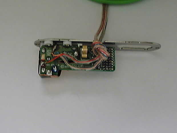 El soporte de metal que sostiene el daughterboard tiene un práctico motch en este lado, así que el cable del auricular del nudo y póngala, nudo interior, en esta muesca. Encontré conveniet nudo el hilo después de soldar, por lo que podría conseguir la longitud del cable adecuado, pero quizá quieras nudo primero para que no poner demasiada tensión en los empalmes de la soldadura, que posiblemente podría romperlos. Siempre puede aflojar y ajustar el nudo después de soldar.