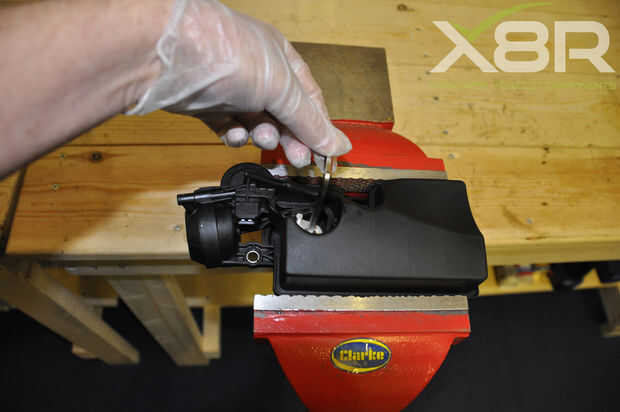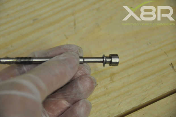 Añadir a sellarroscas la rosca en el tornillo y la grasa hasta el final del tornillo como se muestra.