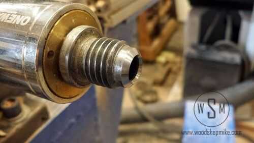 Agarré un pasador (1/8 "x 1" creo) y comenzó a conducir en el centro, efectivamente el centro vivo de bloqueo para que no gire. Una vez hecho esto, me arrojó del diámetro grande del cuerpo del centro vivo y funcionó el torno alrededor de 100-200 rpm. Con un archivo, con gracia (sí, con gracia) reformuló el cono a su perfil actual.