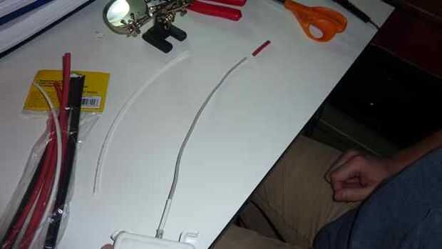 La contracción de la tubería con el cable de corte del resbalón.  Usé tres tamaños diferentes todos poco a poco cada vez más grande en diámetro dar las porciones de cable de soporte.