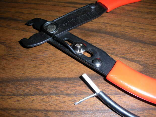 Por lo que ahora debe tener dos partes cortadas con su cable de alimentación. Deslice un trozo de tubo hacia abajo en una de las piezas de alambre termocontraíble y moverlo fuera del camino para más tarde. Tomar un alambre decapado herramienta o un par de tijeras y empiece a desprender nuevamente el aislamiento de los cables. Ser muy cuidado de no cortar demasiado profundo como vas a tener que cortar el cable otra vez. Si es tu primera vez pelando los cables incluso recomendaría practicar en un cable de extensión baratas que no te importa perder. Como llegar a través de cada capa, tuerza los alambres internos para mantenerlos todos juntos. En mi caso tuve dos capas exteriores y luego un cable del centro.