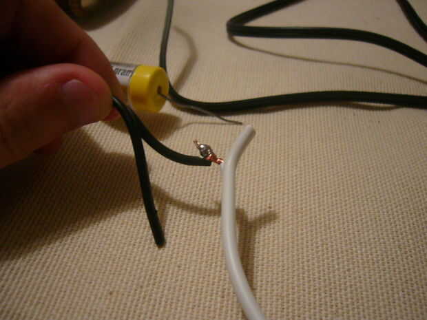Globalización en un poco de soldadura. Si tienes calor retráctil (yo no), no olvides tirar algunos en primera. De lo contrario, la soldadura de distancia - sé desordenado, pero se trata de un hack - no algo que sea bueno.