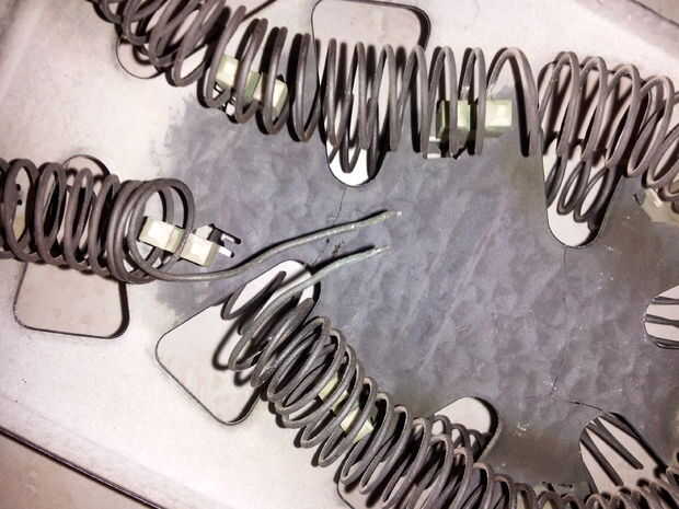Striaghtened con cuidado los extremos rotos con una pinza de nariz de aguja. Recuerde que el cable del elemento es probablemente frágil, para no doblar en exceso. Era un poco demasiado apresurada en este uno y el resultado fue que no pudo y tuve que rehacer la reparación después de un día. La segunda vez alrededor fijo buena!