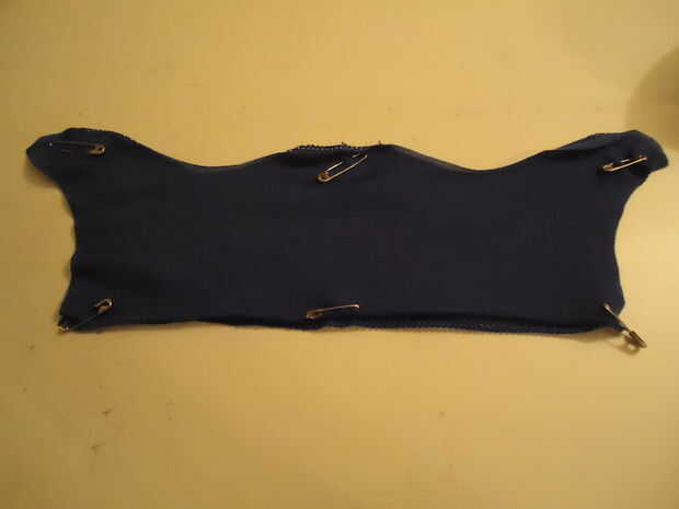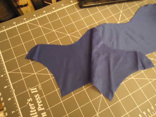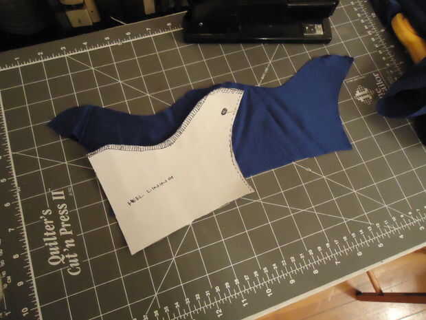 Plancha al tejido plano, perno ambas capas juntas y cortar alrededor de su patrón de papel con una cuchilla giratoria. Debe tener dos capas de guarnición del zapato de la tela ahora.
