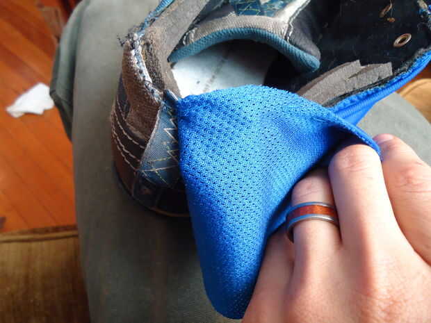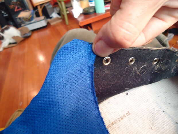 Reparación de calzado de tenis: Rasgado talón forros (5 / 8 paso)