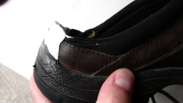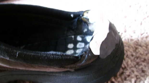 En primer lugar, tuve que reconstruir la estructura de soporte y fije qué cuero poco y seguía siendo "otro" material del zapato.