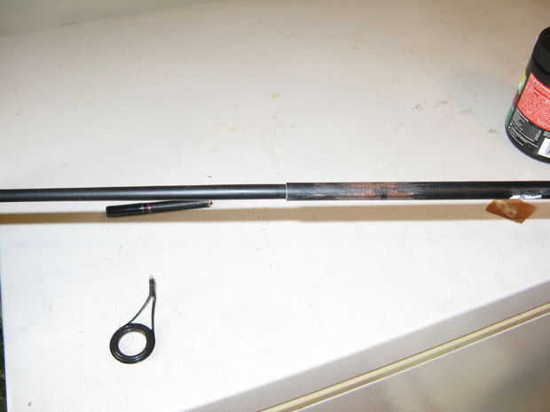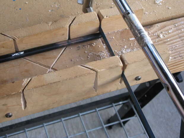 Luego raspar la resina y había cuadrado el extremo deshilachado del pero para el casquillo en una caja de ingletes.