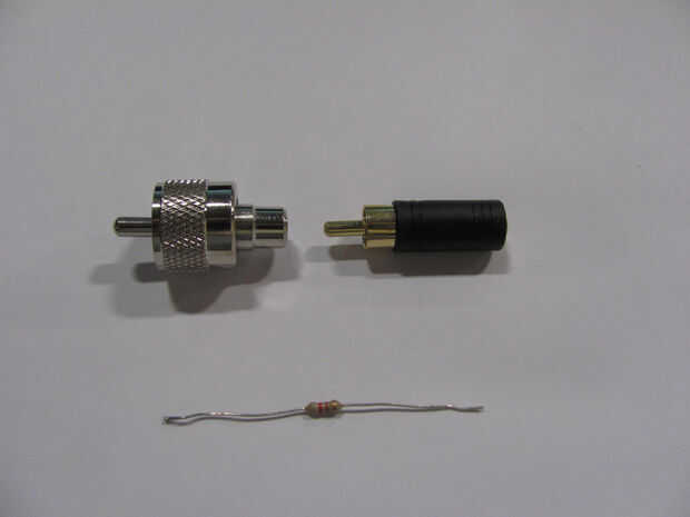 Tenía la intención de poner una resistencia de 820 ohm entre los 2 adaptadores, pero el pasador central del PL259 adaptador era sólido. Algunos miembros del grupo de Yahoo de CDV-700 dijeron puede haber modelos que se dañaría si no había suficiente impedancia en el circuito de auriculares. No he tenido ningún problema de esa manera, pero auriculares de muy baja impedancia pasará a través del ruido del circuito. Si utiliza auriculares de 32 o 64 ohm no debe oír el gimoteo de un circuito de 6B de Lionel, que es el más ruidoso de los modelos más últimos. Vic 6 modelos tienen circuitos separados de audio y son un poco más tranquilas que un 6B de Lionel.