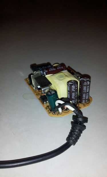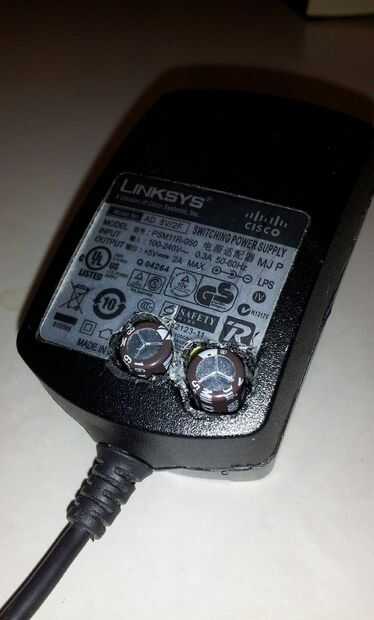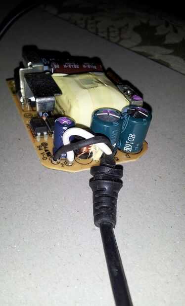 Corte el caso del adaptador de corriente defectuosos y me encontré que el problema fue causado por la plaga del condensador. Hace unos años había un lote entero de condensadores defectuosos que fueron utilizados en varios gadgets de electrónica, incluyendo TV, receptores de satélite, adaptadores de corriente etc.. Cuando estos condensadores fallan, ya que inevitablemente, el gadget deja de funcionar o exhibe un comportamiento extraño. Afortunadamente, es sobre todo una solución fácil. Identificar los que son malos (generalmente han hinchados tops), vuelva a los culpables con los casquillos nuevos del mismo valor. En mi adaptador de corriente, las tapas de 2 a la derecha (pintada de color rosa) son malas. Reemplacé con tapas nuevas de tener el mismo valor (680uF, 16V, 105C). Sólo cuestan unos pocos centavos. Tengo que desoldar los malos y luego soldar los nuevos. Como se puede ver, los nuevos que he comprado eran más altos, así que corte 2 orificios en la parte superior la mitad de la caja del adaptador para acomodarlos.