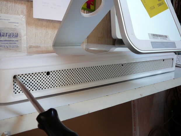 Cuando se hace la prueba: Coloque la tapa en el imac y gire todos los tornillos de tres a la derecha.