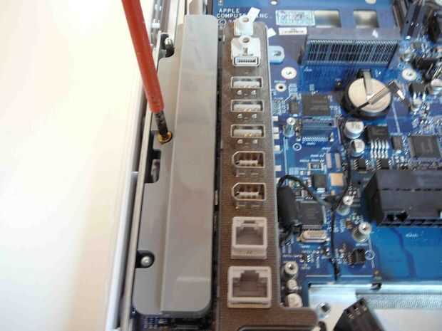 Oh y no olvides regresar hacia atrás el tornillo de la ranura en la posición cerrada. (a la derecha) Esto le ayudará a hacer espacio para retirar la fuente de alimentación.