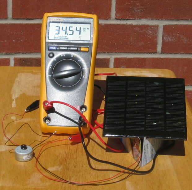 Alimentar un motor eléctrico con una célula solar puede ser difícil; la corriente de oleada de arranque de un motor puede ser dos veces el funcionamiento actual, por lo que este 720 mW de células solares puede no arrancar motor 720 mW cuando el motor está conectado directamente a la célula solar. Necesita una batería entre la célula solar y el motor o el condensador cargado para el arranque del añadido actual.