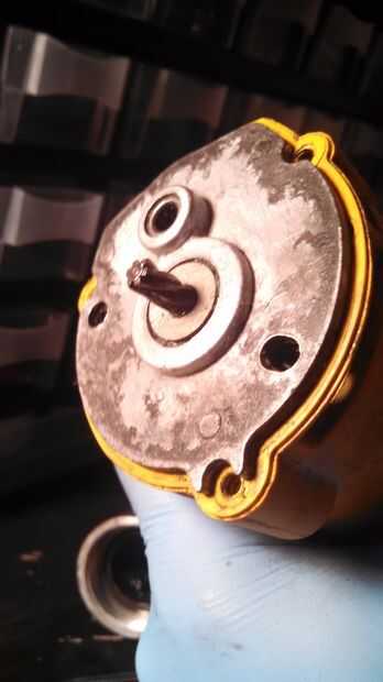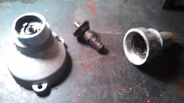 La pieza frontal no estaba en muy mal estado, todavía mal verde grasa, y la Junta de sello fue completa aunque seco. Un poco de suciedad y moho fue lo que hizo el collar de ajuste del palillo.