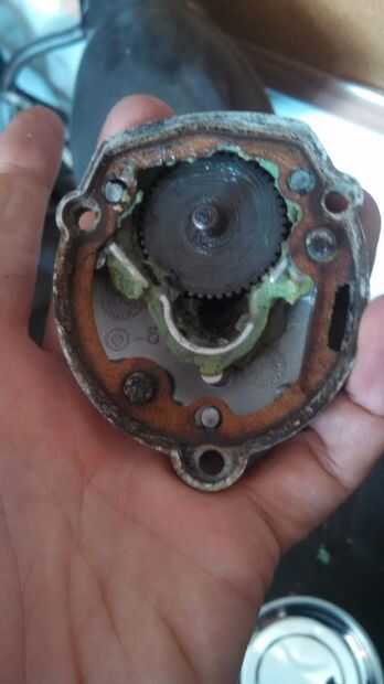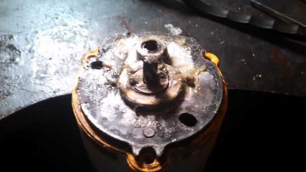 Abriendo el frente grande y fue saludado con la verde y ahora muy sucia, grasa. Se enfrentó a la placa que separa el motor eléctrico y el mecanismo de engranaje y tornillo y los años de la arena han tomado su trabajo.