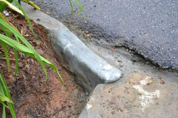 La piedra y el hormigón deben ser mojados cuando vayas a colocar el relleno con adhesivo. Una vez que el hormigón esté en su lugar puede empezar a formar en la forma deseada. Aunque estas fotos no lo bueno, usando un pequeño pedazo de madera en forma de la superficie del hormigón que marcas y variaciones de superficie para que coincida con la piedra de granito. El colorante no coincide bien, pero eso cambiará con el tiempo.