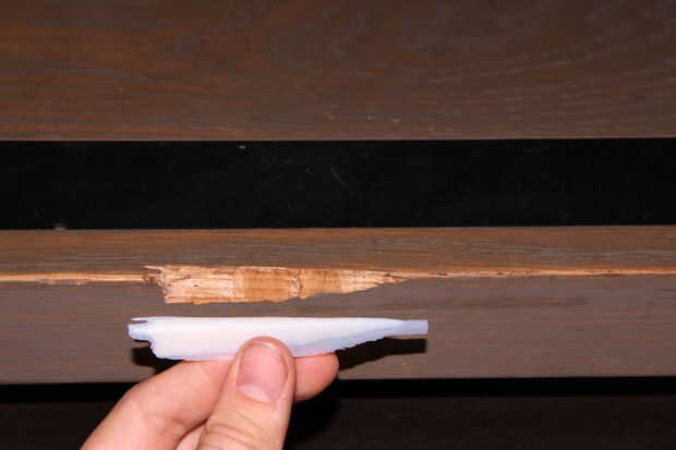 Puede ser muy frustrante cuando termine de remodelar una cocina o construcción de una caja de la escalera y sólo un par de semanas más tarde un chip gigante aparece. Lo mismo sucedió en nuestro taller de muelle 9, cuando apareció un chip muy notable en nuestra escalera.
