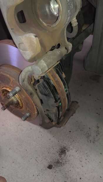 Ahora, el coche que estoy trabajando hoy en día es un Pulsar de Nissan 2001, la mayoría sistemas de frenado delanteros son iguales o muy similares al que en este coche. Mirar la pinza de freno notará 2 pequeños tornillos sosteniendo la pinza en el soporte. Retire el perno inferior y levantar la pinza hacia arriba, exponiendo las zapatas de freno. Desde aquí, empuje la pinza por lo que la corredera se mueve fuera del soporte y resto la pinza en alguna parte (cuidado de no poner la tensión en la línea de freno) generalmente siente mía en la primavera.