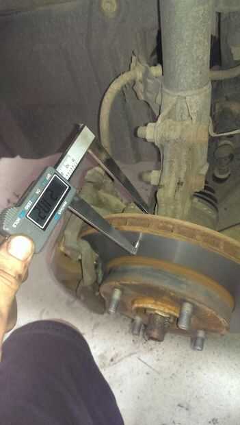 Lo siguiente que debemos hacer es averiguar cual es la especificación del fabricante el espesor mínimo de los rotores, para mi Pulsar, Nissan ha dicho 20mm es el mínimo espesor y medida de mina en poco más de 21 mm por lo que deben ser bien para el siguiente paso! Rejuvenecimiento/el trabajar a máquina los rotores :)