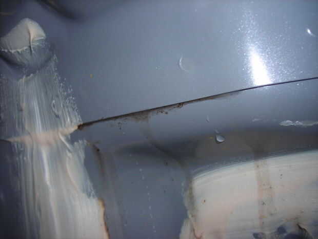 Desde el agua, era enteramente en el lado del pasajero, la fuga tenía que ser por ese lado también. Comencé por secado toda el agua dentro de los troncos. Tuve que tomar las alfombras, la rueda de repuesto y el gato del coche. Necesitaba algo para sacar el agua hacia fuera y había una botella vacía de champú con el corte superior, lo suficientemente delgado para conseguir el agua pegado dentro de compartimentos estrechos. Tengo tanta agua como podía así y termine de secar cosas con una toalla de baño vieja. Una vez todo seco, es mucho más fácil ver de donde viene el agua!