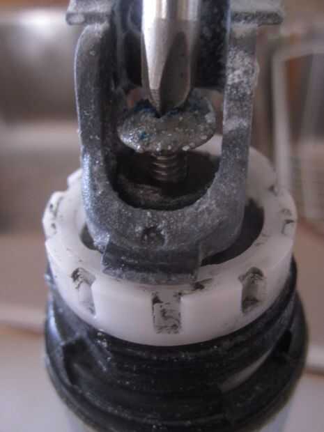 Como se puede ver en las fotos, usted tendrá que quitar la parte metálica del mecanismo de la manija desatornillando el tornillo con un Philips destornillador «+». El tornillo tiene realmente abajo un pequeño clip de plástico negro que envuelve parte del mecanismo de metal y que permite que gire. Cuando usted lo desenrosque, la pieza de metal y la pinza de plástico salen con el tornillo.