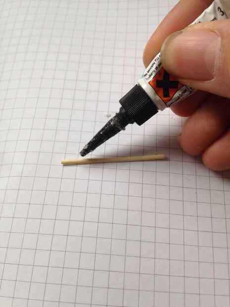 3 - poner pegamento en el palillo y empuje inmediatamente en el agujero de la guitarra.