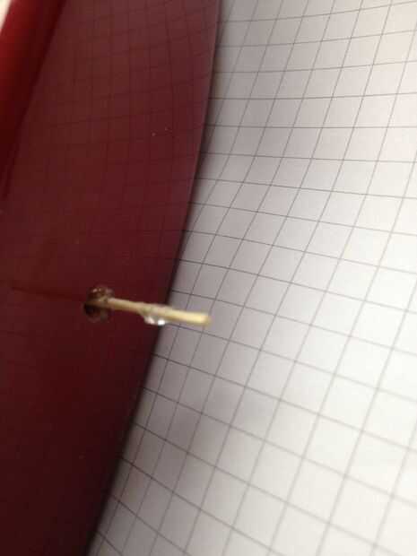 4 - cortar el palo y la tripulación el tornillo en el agujero. No atornille la tripulación ahora.