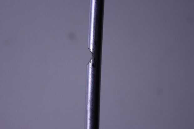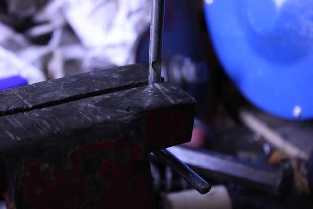 Cuando termine de hacer muescas en, sostenga firmemente la varilla en el tornillo de banco y doblar a 90 °, 2 veces.