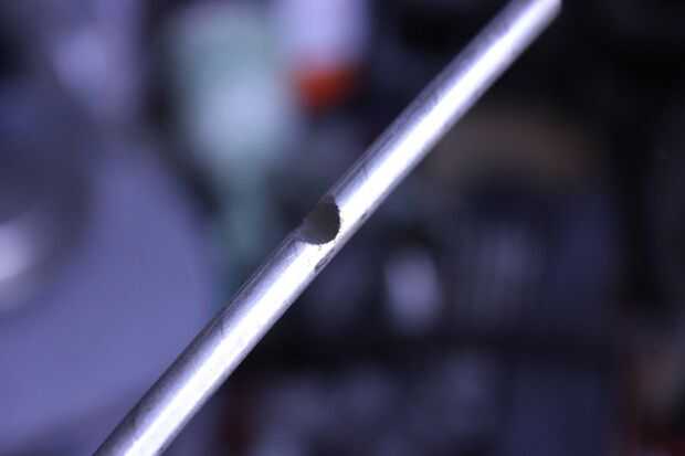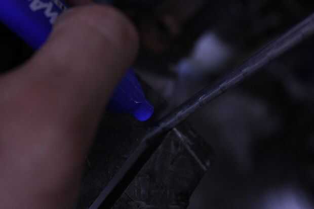 Comenzar con la medición de la longitud correcta de la varilla de acero de 6mm y talla una muesca pequeña para hacer el doblez más fácil.