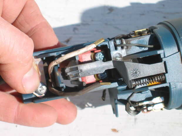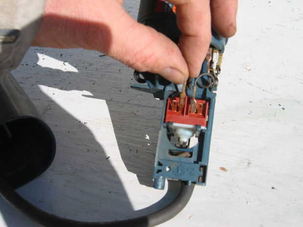 Este interruptor tiene una cubierta de goma. Yo peladas para inspección visual y ver piezas rotas dentro y contactos carbonizados. Una prueba de continuidad revela también un interruptor mal.