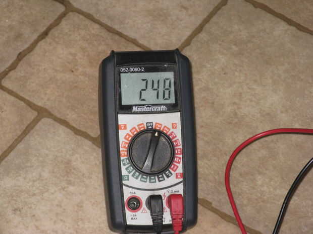 Luego conecte la estufa y probar todas las funciones de horno, cuando el cocer al horno los cables del elemento de fondo deben registrarse voltaje de la fuente, en mi caso mucho más altos que la posición de 200 voltios en mi medidor de 240 voltios.