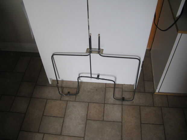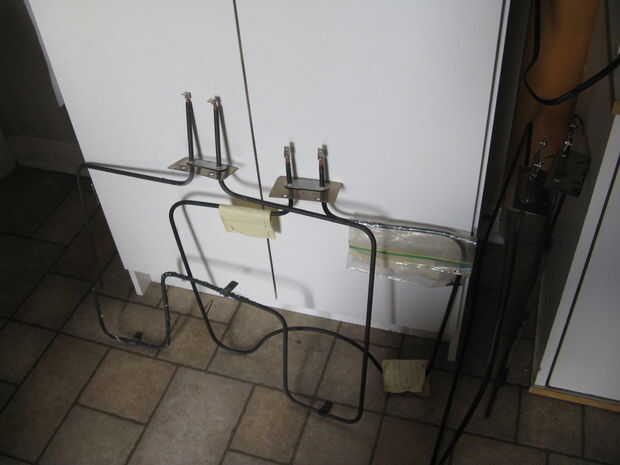 Así que fue a través de mis piezas de repuesto y encontré tres elementos del horno de que solamente uno estaba cerca de la que necesitaba para reemplazar. Yo pude han utilizado este elemento pero quería uno más cercano al original y da a mi esposa la oportunidad de limpiar el horno sin el elemento de la forma.