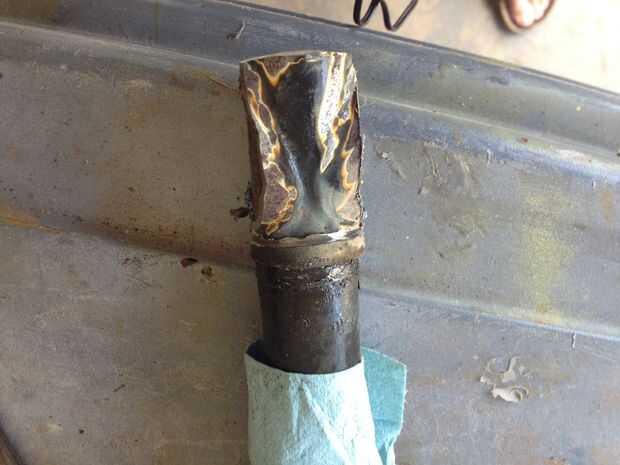 corte con cuidado alrededor de la parte superior de la manga, quieres cortar sólo la capa externa por debajo del cojinete pero puesto que el eje de la dirección es una barra sólida, algunos nicks no lastimarán su resistencia.