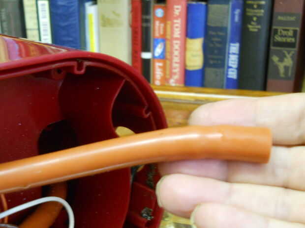 Otras cafeteras sólo tienen una manguera... pero el Señor café cuenta con una válvula dentro de la manguera. Es una válvula que controla el flujo de agua... pero esta válvula es muy pequeña y obstruye fácilmente.  Mina tenía un pedazo pequeño de restos de café que se pega a él que mantienen la válvula obstruida.   Basta con retirar la mugre... y corrige la obstrucción.  Para desmontar la válvula... simplemente apriete la manguera y empuja derecho hacia fuera.  Al instalar la válvula, asegúrese de poner derecha hacia atrás para arriba.  El siguiente paso muestra un cierre de la válvula para que pueda ver qué buscar.